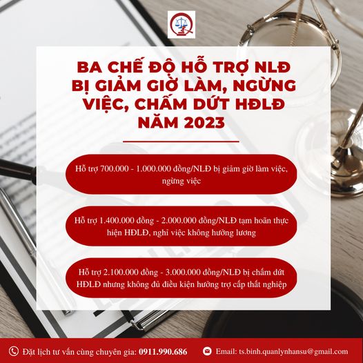 BA CHẾ ĐỘ HỖ TRỢ ĐOÀN VIÊN, NGƯỜI LAO ĐỘNG BỊ GIẢM GIỜ LÀM, NGỪNG VIỆC, CHẤM DỨT HĐLĐ NĂM 2023
